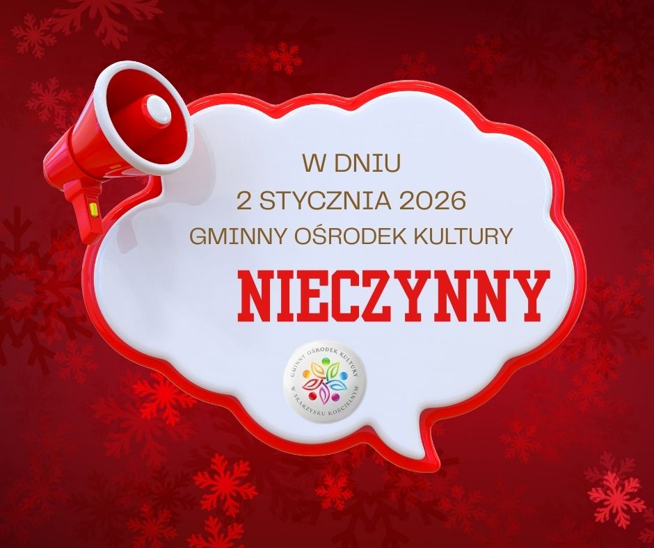 W dniu 2 stycznia 2026 roku Gminny Ośrodek Kultury będzie nieczynny.