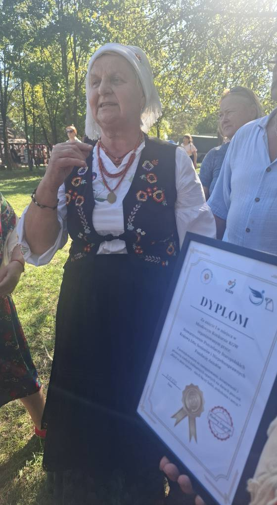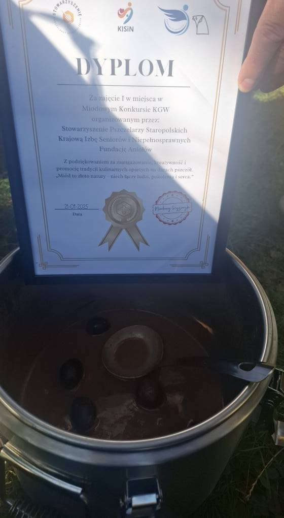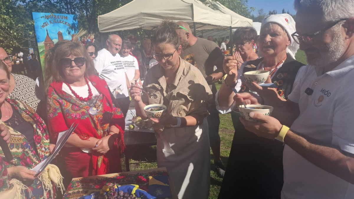 W niedzielę (21 września) w Parku Etnograficznym w Tokarni podczas wydarzenia "Smaki Jesieni", Koła Gospodyń Wiejskich "Polanki" z Lipowego Pola i "Kierzanki" z Kierza Niedźwiedziego, wzięły udział w Miodowym Konkursie pn. " Miód to złoto natury - niech łączy ludzi, pokolenia i serca". Koła z naszej gminy zaprezentowały swoje najlepsze wytwory kulinarne: zupę sliwkową - KGW "Polanki" i ciasto miodownik - KGW "Kierzanki". Jak się okazało, były to prawdziwe asy z rękawa. Spośród kilkunastu dań zaprezentowanych w konkursie, nasze KGW zajęły czołowe miejsca na podium. Pierwsze miejsce przypadło KGW "Polanki" z Lipowego Pola i ich zupie śliwkowej a z miejsca trzeciego cieszyło się KGW "Kierzanki" z Kierza Niedźwiedziego za pyszny miodownik. Aktywny udział w/w wydarzeniu wzięło nasze Koło Seniora, które głośno dopingowało i oklaskiwało naszych zwycięzców. Zawiazała się silna więź, która w niedalekiej przyszłości zaowocuje kolejnymi, wspólnymi projektami.
