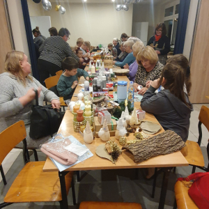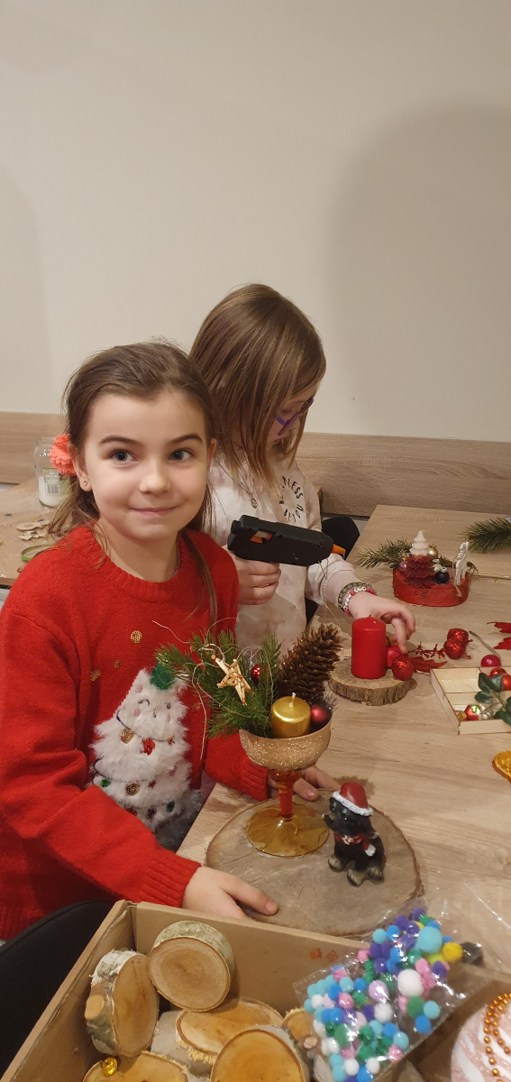 W czwartek 4 grudnia w naszym ośrodku odbyły się Międzypokoleniowe Warsztaty Bożonarodzeniowe, zorganizowane razem ze Stowarzyszeniem Na Rzecz Odnowy Zabytków Parafii Świętej Trójcy w Skarżysku Kościelnym. Zarówno dzieci jak i dorośli połączyli siły, aby pomóc w przygotowaniach świątecznych ozdób na jarmark. Powstało wiele przepięknych świeczników, wiązanek, stroików i figurek. W kuchni za to piętrzyła się masa kolorowych pierników. Wspólnie z przybyłymi dziećmi udekorowaliśmy naszą choinkę, a Natalia wraz z podopiecznymi z zespołu Śpiewające Aniołki, umilała nam czas świątecznymi piosenkami.