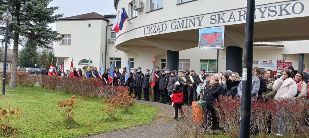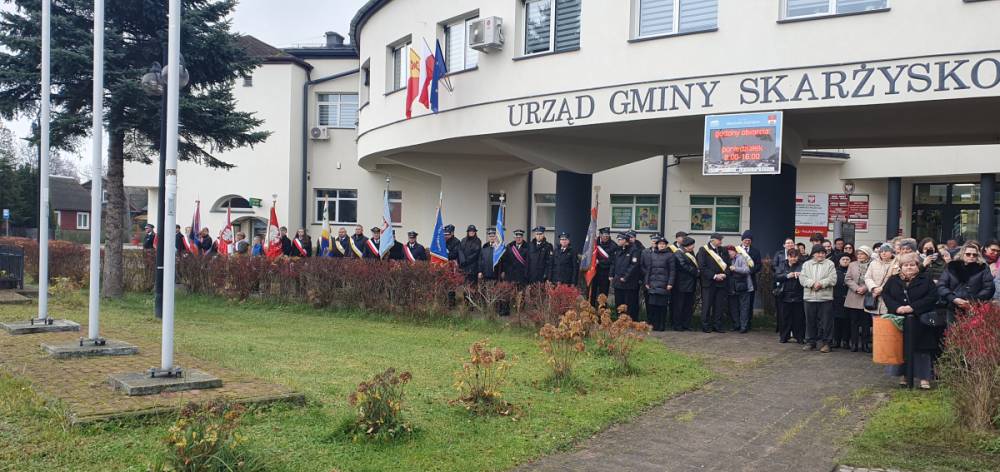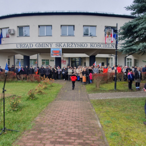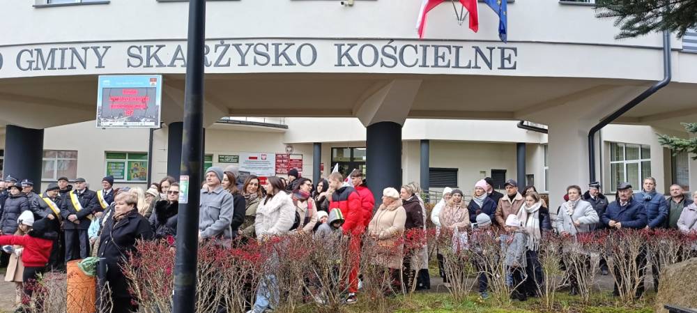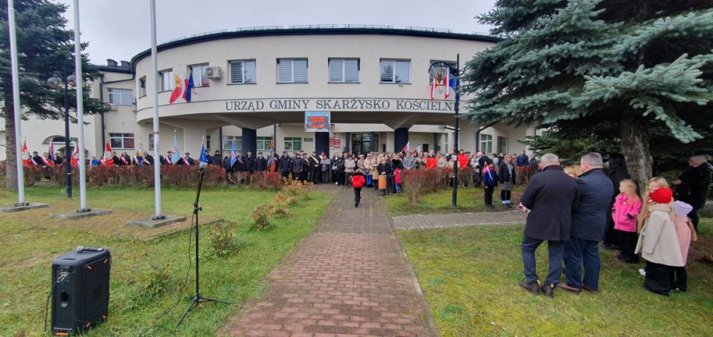 W dniu 11 listopada, punktualnie o godzinie 11.00, mieszkańcy gminy zebrali się na Mszy Świętej za Ojczyznę w Parafii Świętej Trójcy w Skarżysku Kościelnym. Po mszy wszyscy przeszli pod Urząd Gminy, aby wspólnie odśpiewać hymn narodowy i złożyć kwiaty pod pomnikiem upamiętniającym bohaterów walk o niepodległość. Piękne przemówienie patriotyczne wygłosił Wójt, Pan Jacek Bryzik. Następnie odbyły się występy artystyczne, przygotowane przez Przedszkole Samorządowe w Skarżysku Kościelnym oraz Gminny Ośrodek Kultury w Skarżysku Kościelnym. Przepiękne pieśni patriotyczne popłynęły z ust młodych wykonawców, którzy w ten sposób oddali hołd bohaterom walczącym za Ojczyznę