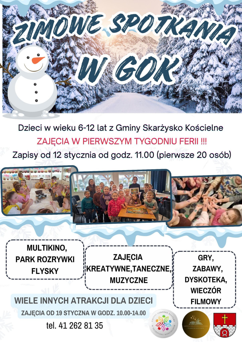 Gminny Ośrodek Kultury wraz z Gminną Biblioteką Publiczną zapraszają wszystkie dzieci z Gminy Skarżysko Kościelne w wieku 6–12 lat na wyjątkowe spotkania w Ferie Zimowe.