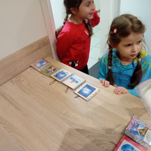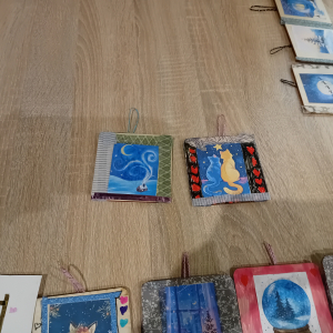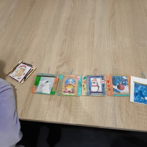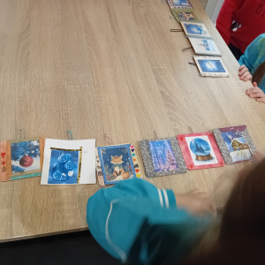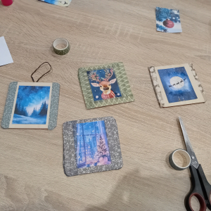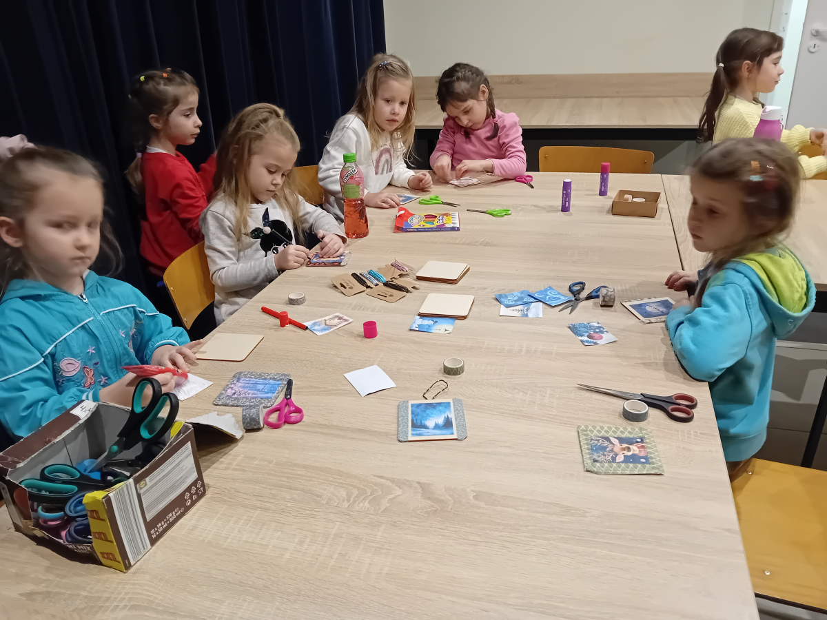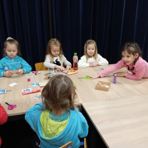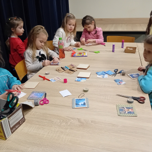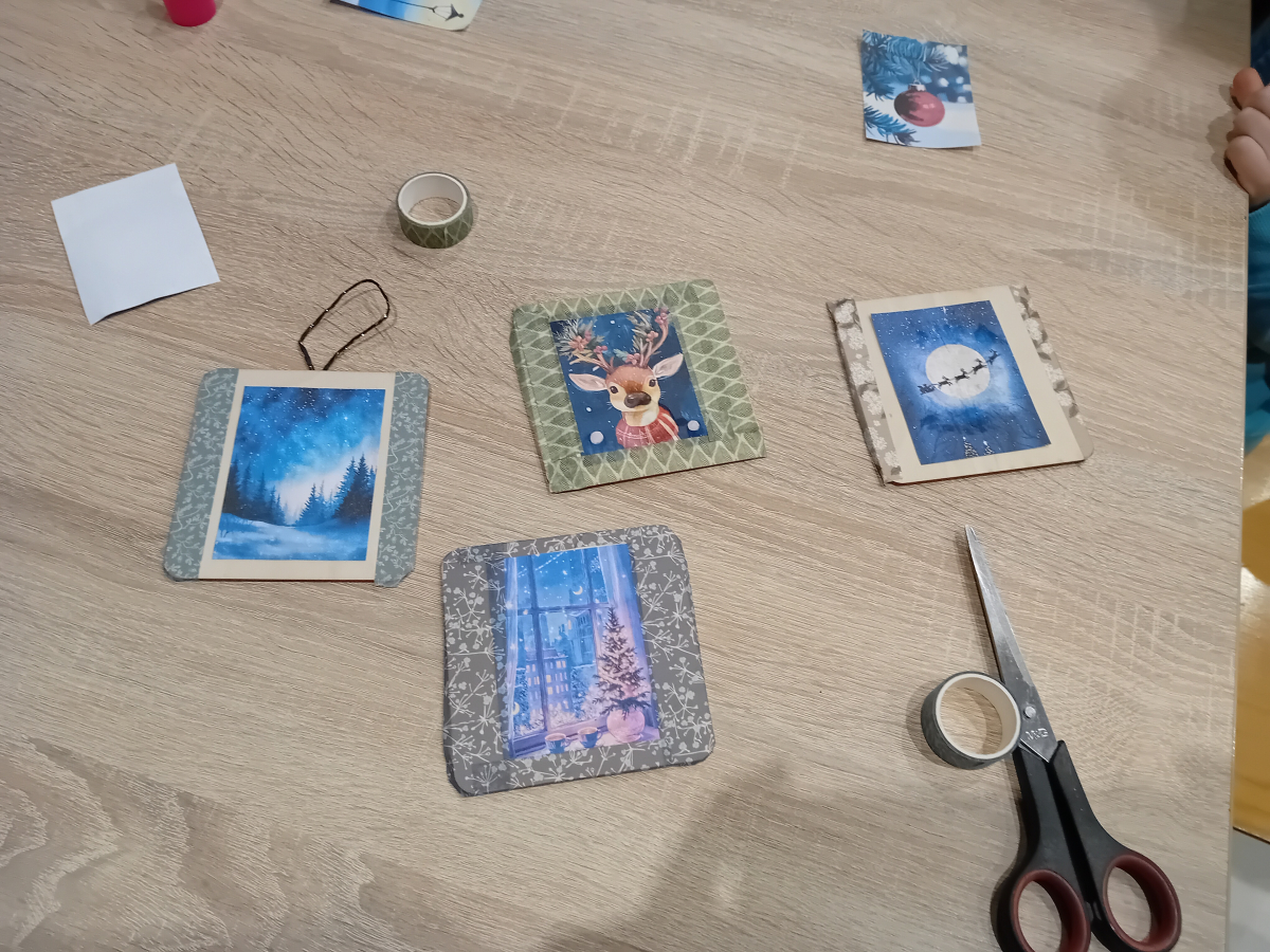 Na wczorajszych zajęciach plastycznych dla najmłodszej grupy dzieci robiły wiszące obrazki, czyli ozdoby idealne na choinkę czy do powieszenia nad łóżkiem . Każda dziewczynka zrobiła przynajmniej jeden, a co niektóre nawet i trzy!
