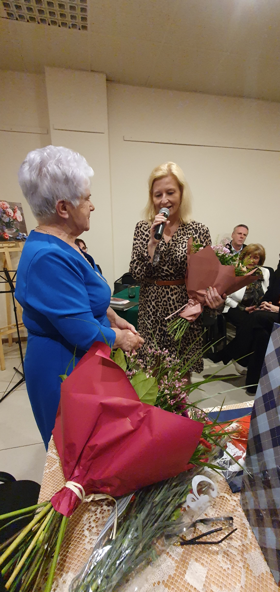 Piątkowy wieczór poetycki Pani Elżbiety Jach był czymś znacznie więcej niż tylko spotkaniem z poezją. Stał się podróżą przez emocje, wspomnienia i ulotne chwile – dokładnie takie, o jakich mówią słowa „życie to mgnienia”. Bohaterka wieczoru zachwyciła swoją wrażliwością i autentycznością, dzieląc się twórczością, która trafia prosto do serca i pozostaje w myślach na długo. Na scenie wystąpiła grupa literacka „Wiklina”, prezentując poruszające recytacje.Publiczność miała również okazję wysłuchać Magdaleny Chmielewskiej w wyjątkowym„monologu miniaturowym”. Wydarzenie wzbogaciła oprawa muzyczna w wykonaniu Zbyszka Bibera oraz Jacka Pastuszko. Występy płynnie przeplatały się ze śpiewem Agaty Sitkiewicz i Natalii Nawrot, tworząc piękną i harmonijną całość. Z całego serca pragniemy Państwu podziękować za liczne przybycie, uważność i wspólne przeżywanie poezji. To właśnie dzięki takim spotkaniom słowo nabiera szczególnej mocy.